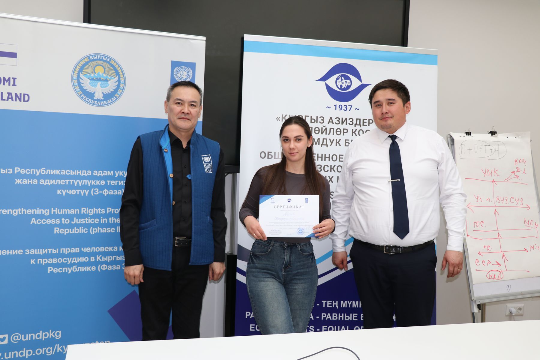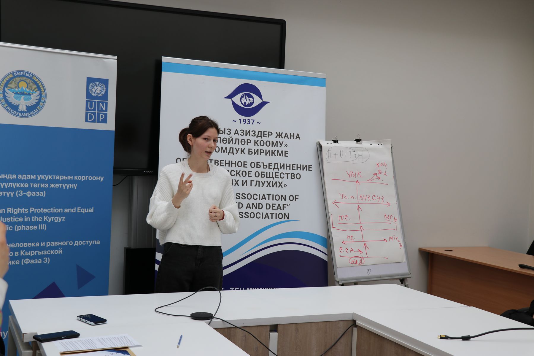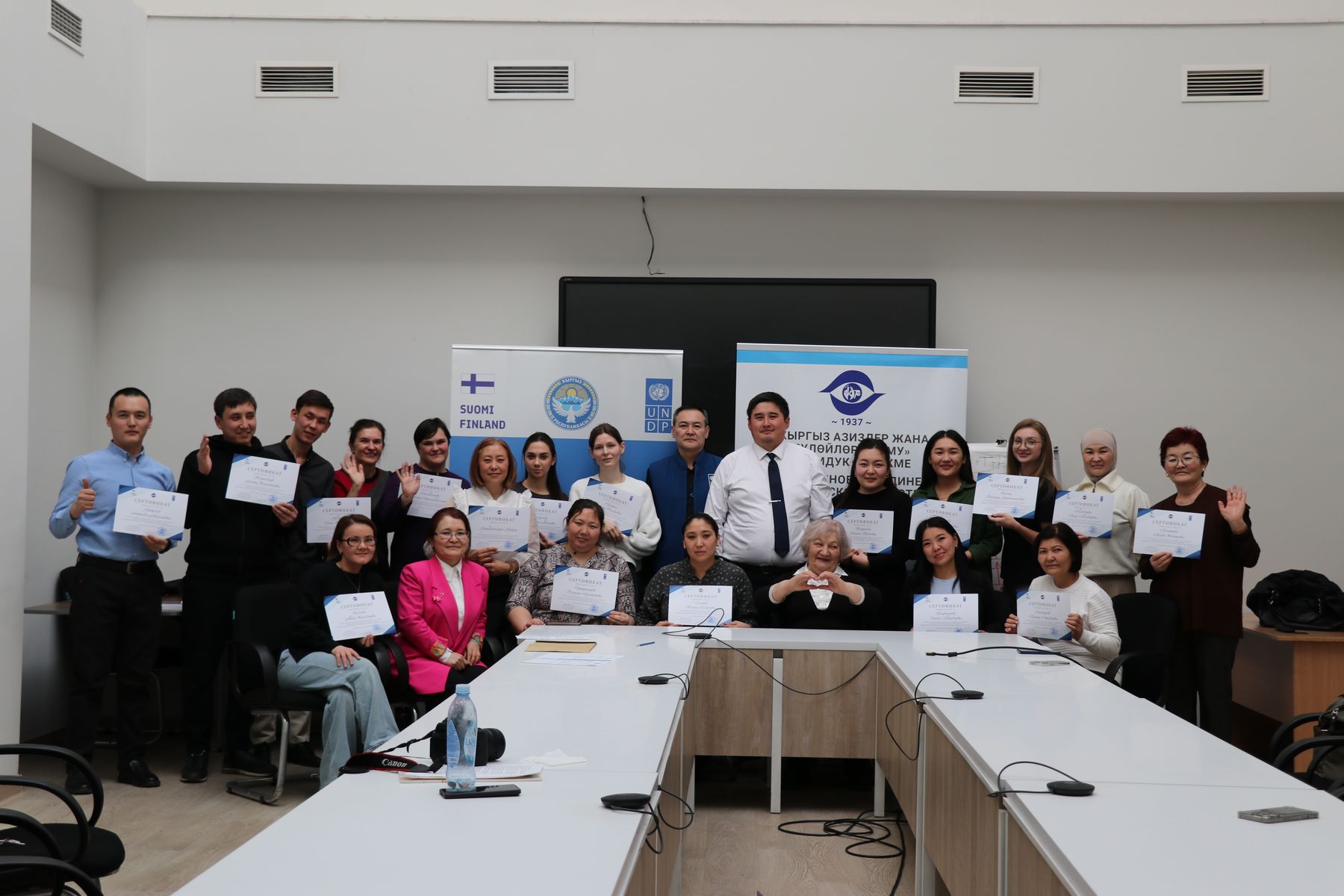 17 февраля 2025 года в Бишкеке прошло торжественное вручение сертификатов выпускникам курсов сурдоперевода с юридической спецификой, организованных ОО “КОС и КОГ” при поддержке проекта ПРООН и МИД Финляндии “Усиление защиты прав человека и равного доступа к правосудию в Кыргызской Республике”.