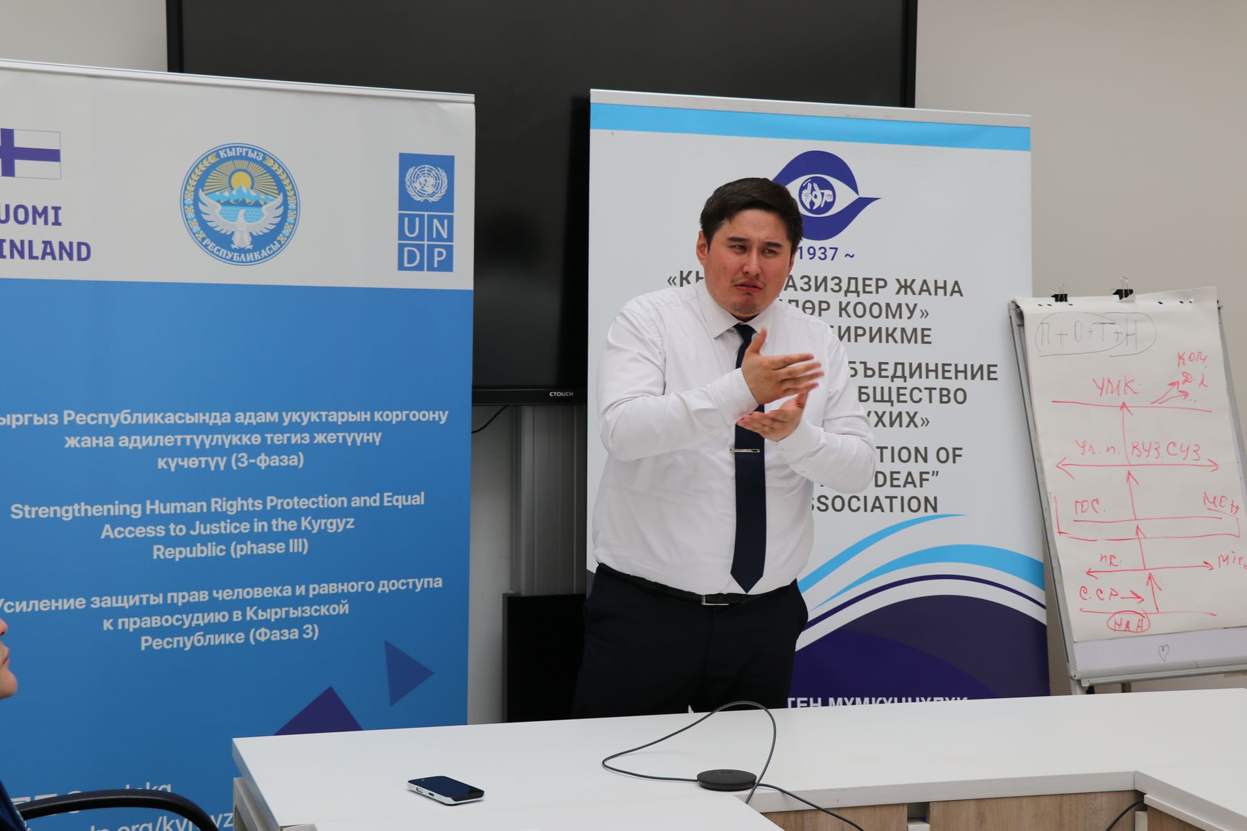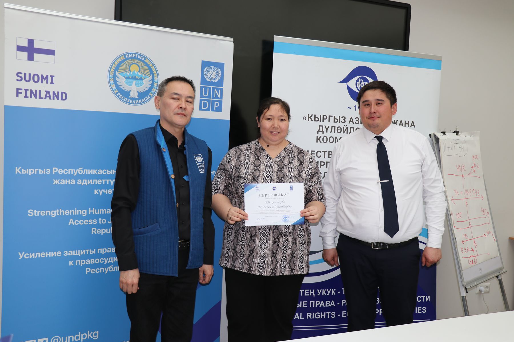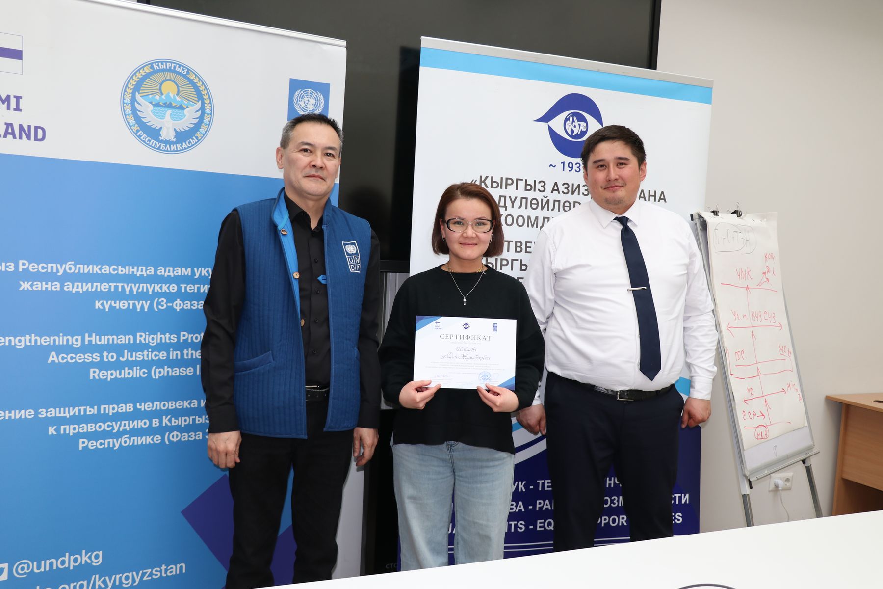 17 февраля 2025 года в Бишкеке прошло торжественное вручение сертификатов выпускникам курсов сурдоперевода с юридической спецификой, организованных ОО “КОС и КОГ” при поддержке проекта ПРООН и МИД Финляндии “Усиление защиты прав человека и равного доступа к правосудию в Кыргызской Республике”.